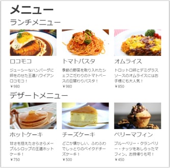 いっぽう、適度な余白を入れると、余裕を感じることが出来ます。ランチメニューとデザートメニューの区切りも分かりやすいですね。