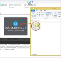 メニューから[画像]をクリックすると、「ここへ画像をドラッグ またはここをクリックして追加」とアップロード画面が現れます。